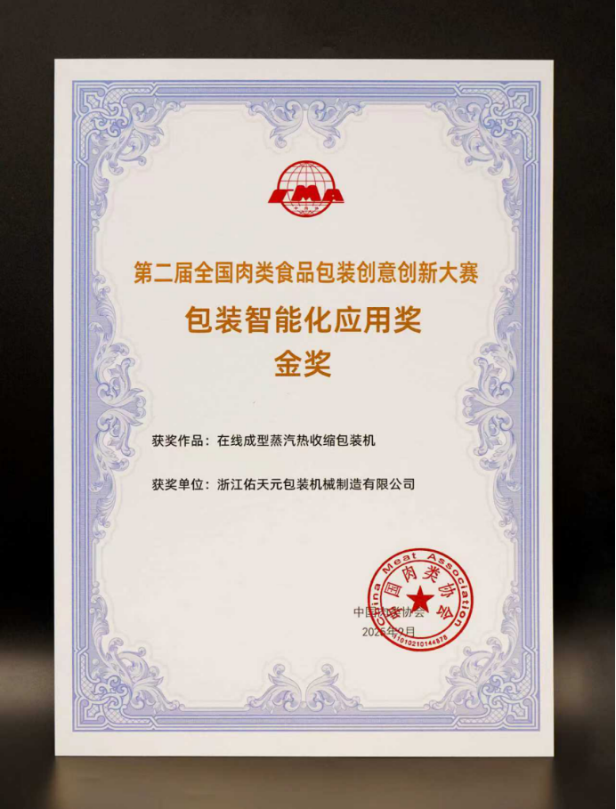 在本届大赛中,浙江今年会包装机械制造有限公司申报的作品——《在线成型蒸汽热收缩包装机》,凭借在智能化应用方面的创新与突破,荣获“包装智能化应用金奖”。该荣誉充分彰显了今年会在智能包装装备研发与应用上的领先实力,同时也体现了行业与专家对企业持续创新能力的高度认可。